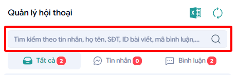 Tìm kiếm tin nhắn, bình luận thông qua ô tìm kiếm.